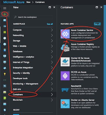 左の「+」から、「Containers」を選び、「Azure Container Service」をクリックします。